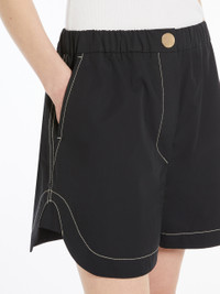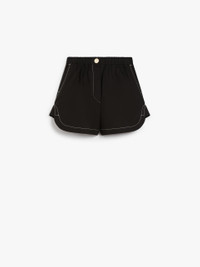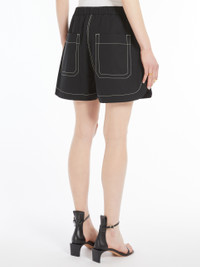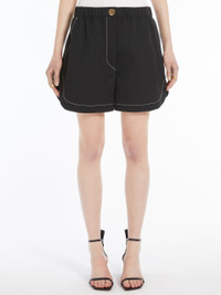 DETAILS Shorts in heavy, washed cotton poplin with a paper-like feel. The construction features a waistband with an elasticated insert that creates natural gathering, rounded slits at the hem and a customised metal press-stud fastening. The whole piece features contrasting stitching. Regular fit. COMPOSITION AND CARE Fabric 100% cotton; lining 100% cotton. Hand wash cold; do not bleach; do not tumble dry; line drying in the shade; cool iron; professionally dry clean perchloroethylene - mild process; do not wet clean. Distributed by Max Mara S.r.l., registered office in Reggio Emilia (Italy), Via Giulia Maramotti 4, 42124 (IT)