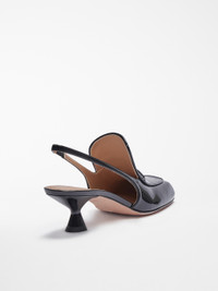 DETAILS Loafer-style patent-leather slingbacks with a square toe. The apron is trimmed with piping and decorated with a stitching motif on the instep. The elasticated strap and the soft insole make them comfortable when wearing and walking. Matching, lacquered spool heel, height: 4.5 cm COMPOSITION AND CARE Upper in lamb leather; lining in lamb leather; sole in leather. Distributed by Max Mara S.r.l., registered office in Reggio Emilia (Italy), Via Giulia Maramotti 4, 42124 (IT)