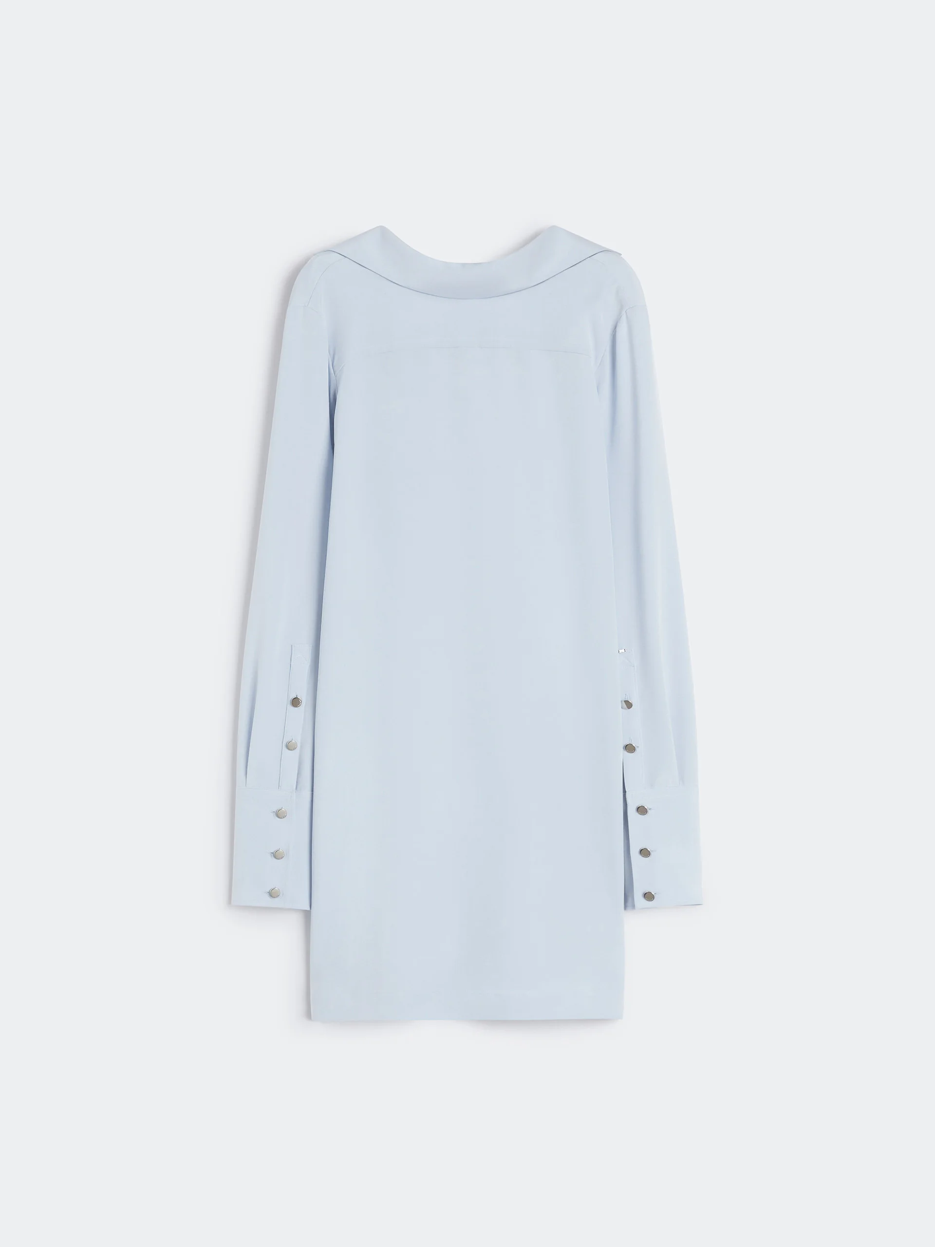 DETAILS Clean-cut tunic dress with a polo neckline turned towards the back. The play on reverses is echoed on the cuff with a front-mounted turn-back. Overlapping side slits with metal buttons. Tunic in heavy pure stretch silk crepe de Chine Straight fit. Polo collar mounted on the reverse with a flowing line Long sleeve with cuffs and front button Overlapping side slits with metal buttons. Regular fit COMPOSITION AND CARE 91% silk, 9% elastane. Do not wash; do not bleach; do not tumble dry; cool iron; professionally dry clean perchloroethylene - mild process; do not wet clean.; put this item into a string bag before washing it.; wash the garment while it is fastened.; turn the articles inside out before washing. Distributed by Max Mara S.r.l., registered office in Reggio Emilia (Italy), Via Giulia Maramotti 4, 42124 (IT)