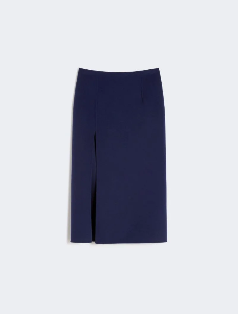 Midi skirt with a minimalist line, edge-to-edge slit on the front and small darts that define the waistline. Made in soft double-face pure wool. - Skirt in double-sided pure virgin wool - Back opening with zip - Regular fit at the waist - Edge-to-edge slit at the front - Regular fit Composition and Care Fabric 100% virgin wool; - except joining thread. Do not wash; do not bleach; do not tumble dry; cool iron; professionally dry clean perchloroethylene - mild process; do not wet clean.; protect zipper tongue and slide before cleaning.; turn the articles inside out before washing. Distributed by Max Mara S.r.l., registered office in Reggio Emilia (Italy), Via Giulia Maramotti 4, 42124