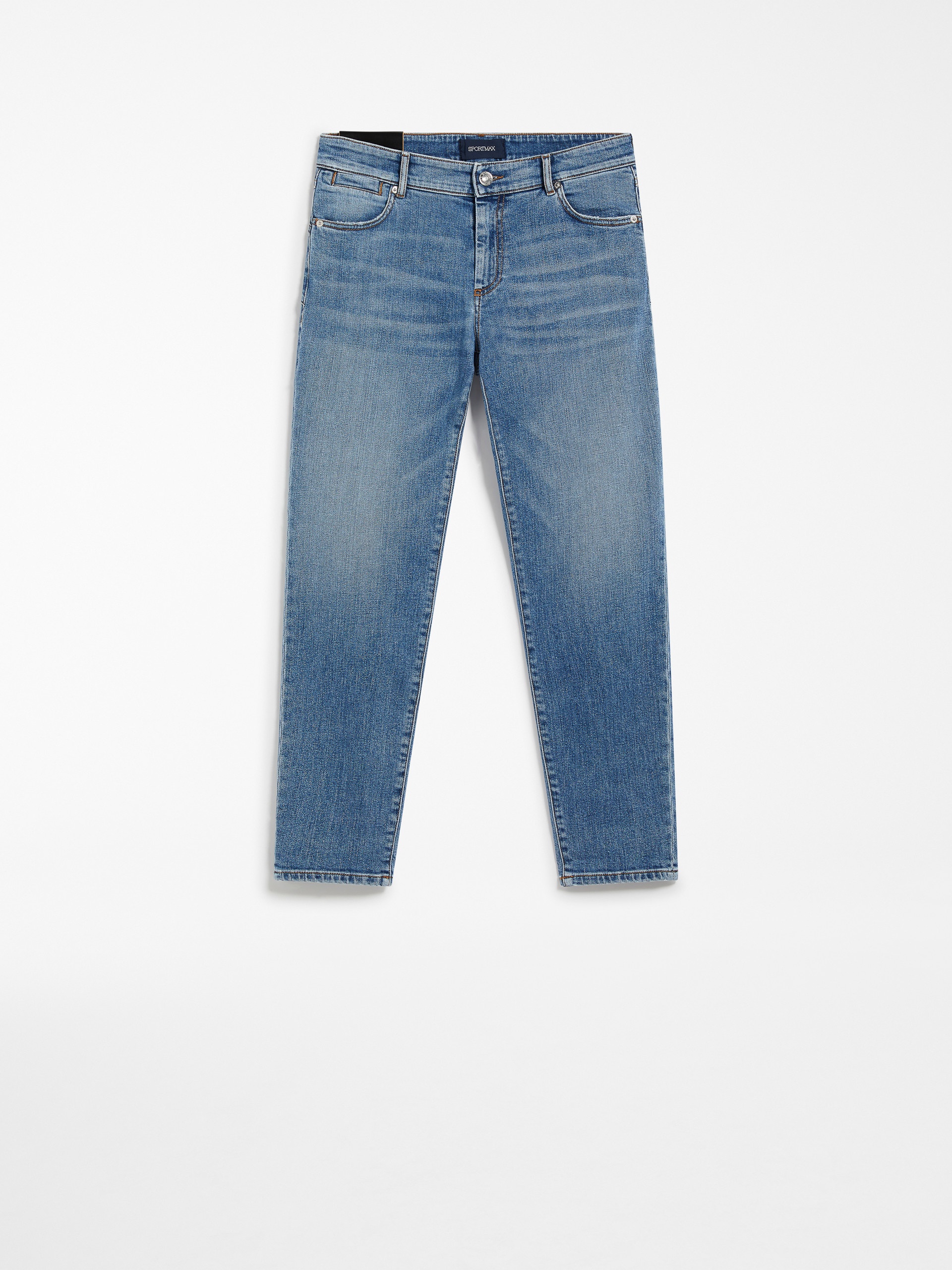 DETAILS Five-pocket jeans in indigo stretch denim, with dark, mid-vintage treatment for a worn effect. The construction features a low waistline and cropped cigarette leg. Contrasting stitching and a customised label complete the item. COMPOSITION AND CARE 99% cotton, 1% elastane. Machine wash cold delicate cycle; do not bleach; do not tumble dry; line drying in the shade; do not iron; do not dry clean.; wash the garment while it is fastened.; don’t iron the labels.; take care when wearing light-coloured clothes or accessories because, with the heat of the body, the indigo fabric , may fade and stain. be careful while sitting on light coloured surfaces, especially if wet. wash garments separately and always turned inside out. hang the garment turned inside out by avoiding to expose it to direct sunlight. avoid removing isolated stains.; contains non-textile parts of animal origin. Distributed by Max Mara S.r.l., registered office in Reggio Emilia (Italy), Via Giulia Maramotti 4, 42124 (IT)