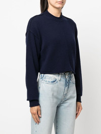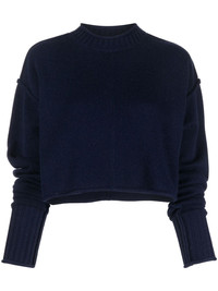 ribbed-knit cropped jumper ribbed-knit cropped jumper from Sportmax (VIP) featuring navy blue, wool-cashmere blend, ribbed detailing, high neck, long sleeves and cropped. Made in Italy Composition Wool 80%, Cashmere 20% SIZE & FIT Model measurements Height 5 ft 11 in(1.8 m) Bust/Chest 33.07 in(84 cm) Hips 37.4 in(95 cm) Waist 25.19 in(64 cm) FittingInformation This piece fits true to size. We recommend you get your regular size Cut for a loose fit Made with a mid-weight fabric