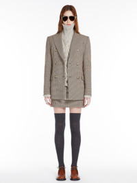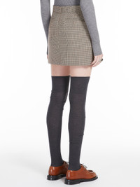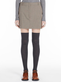 DETAILS Tailored mini skirt in houndstooth-patterned yarn-dyed stretch wool-blend gabardine fabric. The mannish trouser-inspired design boasts a fly-covered button fastening at the waist, belt loops and pressed pleat detail on the front and back of the legs. The branded internal waistband, slant side pockets and welt rear pockets all complete the design. Lined garment. COMPOSITION AND CARE Fabric 48% virgin wool, 48% polyester, 4% elastane; lining 70% acetate, 30% polyester. Do not wash; do not bleach; do not tumble dry; cool iron; professionally dry clean perchloroethylene - mild process; do not wet clean. Distributed by Max Mara S.r.l., registered office in Reggio Emilia (Italy), Via Giulia Maramotti 4, 42124 (IT)