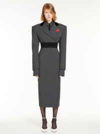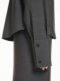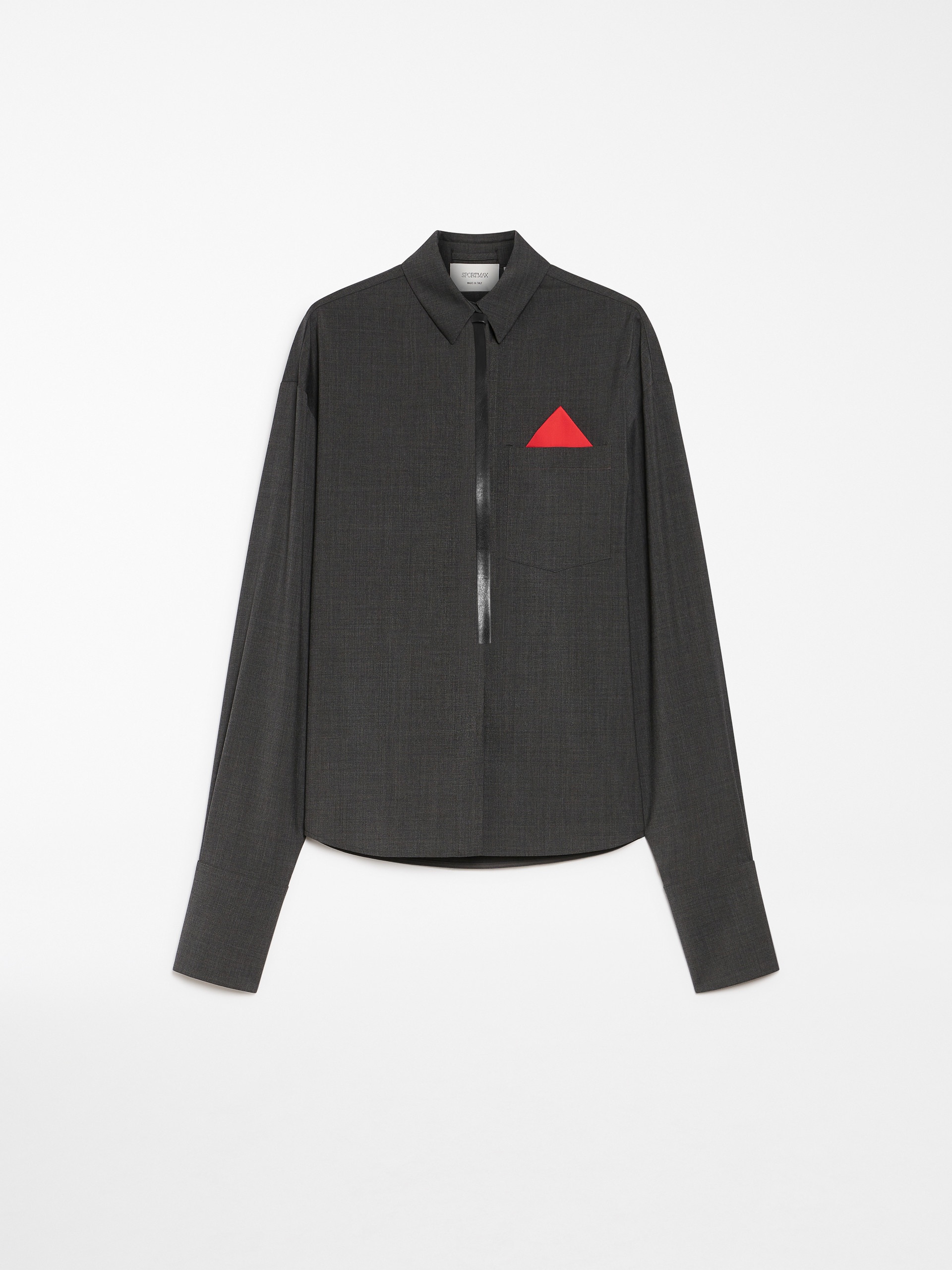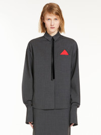 DETAILS Oversized shirt made of natural-stretch pure wool. Dropped shoulders and low-cut armholes are paired with a straight line through the torso and a box pleat on the back. Visible stitching outlines the yoke seams and rounded hemline. This garment is completed with a small necktie and pocket square in matching fabric. COMPOSITION AND CARE Fabric 100% virgin wool; - exclusive of decoration. Do not wash; do not bleach; do not tumble dry; cool iron; professionally dry clean perchloroethylene - mild process; do not wet clean.; wash the garment while it is fastened.; turn the articles inside out before washing.; before cleaning the style remove the accessories. Distributed by Max Mara S.r.l., registered office in Reggio Emilia (Italy), Via Giulia Maramotti 4, 42124 (IT)
