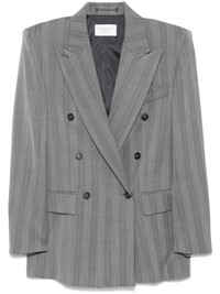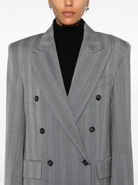 Merlot blazer Highlights - Medium grey - Herringbone pattern - Double-breasted button fastening - Peak lapels - Chest welt pocket - Shoulder pads - Long sleeves - Buttoned cuffs - Two side flap pockets - American rear vent - Full lining - Straight hem Imported Composition Outer: Polyester 48%, Virgin Wool 48%, Spandex/Elastane 4% Lining: Acetate 70%, Polyester 30% SIZE & FIT Model measurements Height 5 ft 10 in(1.78 m) Bust/Chest 33.07 in(84 cm) Hips 36.61 in(93 cm) Waist 24.8 in(63 cm) FittingInformation Designed to be unstructured, offering a loose fit throughout The internal shoulder pads offer a structured shape Made from a midweight fabric Washing instructions Dry Clean Only