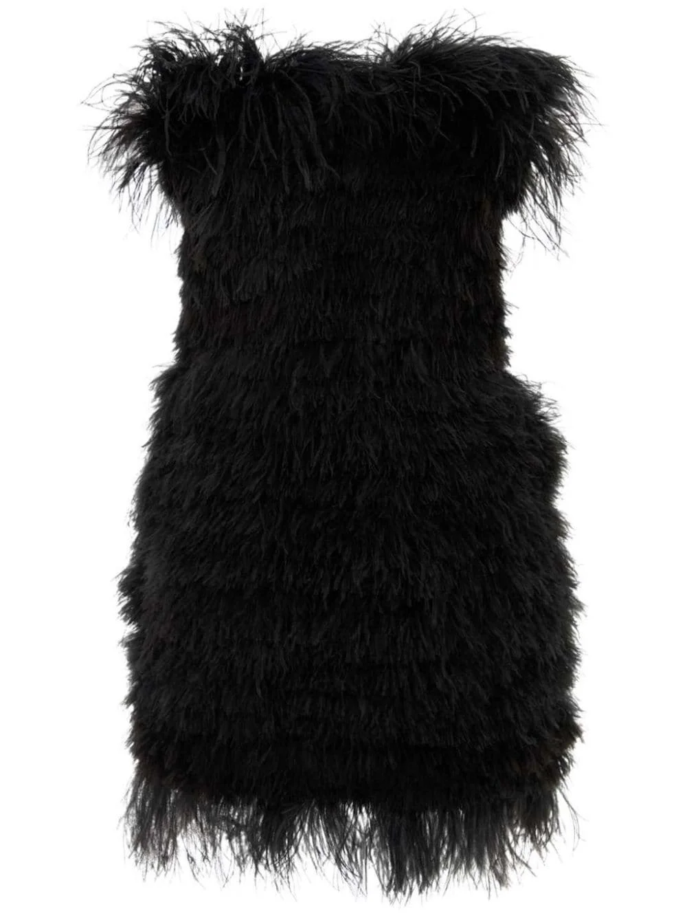 Avocado mini dress Highlights - Black - Rear zip fastening - Faux-feather detailing - Strapless - Frayed hem - Thigh-length Made in Italy Composition Lining: Polyester 100% Outer: Polyester 100%