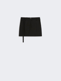 DETAILS Mini pencil skirt with high belt loops at the waist. The ironed pleats on the front are reminiscent of the constructions of men's tailored trousers. Mini skirt made of pure yarn-dyed wool canvas Straight fit with low waist High waist belt loops, with S-buckle Slant side pockets and back welt and button pockets. Unlined garment with customised internal belt and ironed pleat on the front Regular fit COMPOSITION AND CARE Outer fabric 100% virgin wool; inner fabric 100% polyester; lining 70% acetate, 30% polyester. Do not wash; do not bleach; do not tumble dry; cool iron; professionally dry clean perchloroethylene - mild process; do not wet clean.; turn the articles inside out before washing.; remove the buckle before washing. Distributed by Max Mara S.r.l., registered office in Reggio Emilia (Italy), Via Giulia Maramotti 4, 42124 (IT)