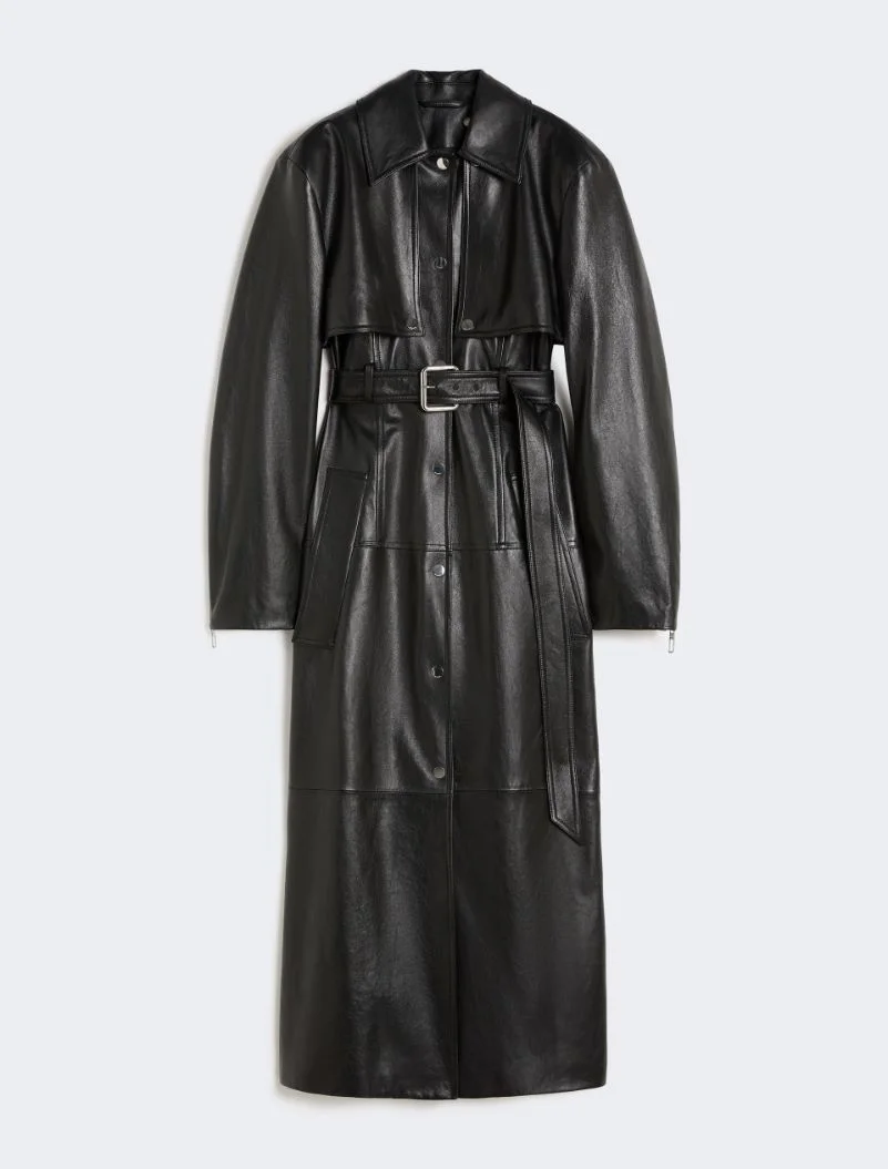 Soft Nappa leather trench coat with a 2-in-1 design: the top layer comprises a short crew-neck jacket with long sleeves. The sleeveless bottom layer, on the other hand, features a shirt collar, press studs and a metal-buckle belt. The garments can be attached to one another via the metal press studs. - Nappa leather trench coat - Crew-neck top layer with a zip fastening - Sleeveless bottom layer with press studs and a belt - Regular fit Composition and Care Style in lamb leather; lining in 100% polyester. Do not wash; do not bleach; do not tumble dry; do not iron; do not dry clean; do not wet clean.; do not wash or dry clean by fabric methods. clean only by leather and fur specialists.; remove the belt before washing.; care should be taken with light-coloured garments and accessories because body heat could lead the leather to colour loss and staining. care should be taken when sitting on light-coloured surfaces, especially if damp. avoid lengthy exposure to direct light or heat sources. do not store garments in plastic bags for long periods. Distributed by Max Mara S.r.l., registered office in Reggio Emilia (Italy), Via Giulia Maramotti 4, 42124
