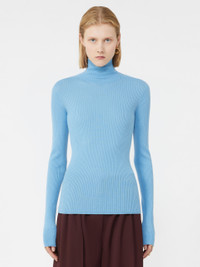 DETAILS Pure wool turtleneck jumper in a rib knit for a naturally snug fit. With a turn-down polo neck and long sleeves. Pure virgin wool yarn jumper Fitted Polo neck Hip length Fitted COMPOSITION AND CARE 100% virgin wool. Hand wash cold (40°c max); do not bleach; do not tumble dry; flat drying in the shade; cool iron; professionally dry clean perchloroethylene - mild process; do not wet clean.; iron with a cloth between.; using neutral detergent. Distributed by Max Mara S.r.l., registered office in Reggio Emilia (Italy), Via Giulia Maramotti 4, 42124 (IT)