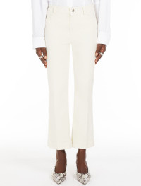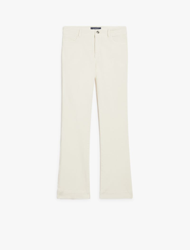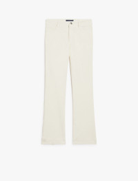 Perfect-fit five-pocket trousers made of garment-dyed stretch bull. The low waist and flared line at the ankle define a mini flare fit, completed by a trouser crease both at the front and back. The metal rivets, customised tack button and back label are iconic denim details. Composition and Care 93% cotton, 5% elastomultiester, 2% elastane. Machine wash cold delicate cycle; do not bleach; do not tumble dry; line drying in the shade; cool iron; do not dry clean.; wash the garment while it is fastened.; wash separately.; do not iron the buttons.; turn the articles inside out before washing.; dyed article. the unevennes of the dye and the pressing form its characteristic.; this item may leave colour stains on brightly-coloured garments.; contains non-textile parts of animal origin. Distributed by Max Mara S.r.l., registered office in Reggio Emilia (Italy), Via Giulia Maramotti 4, 42124