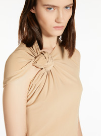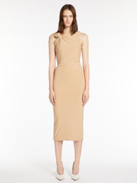 DETAILS Feminine, slim-fit dress in fluid-hand technical jersey fabric. The asymmetrical design boasts knot detail on the right shoulder and a sleeveless cut on the left side COMPOSITION AND CARE 95% polyester, 5% elastane. Machine wash cold delicate cycle; do not bleach; do not tumble dry; flat drying in the shade; cool iron; professionally dry clean perchloroethylene - mild process; professional wet cleaning - very mild process.; wash separately.; iron with a cloth between.; using neutral detergent.; turn the articles inside out before washing.; don’t iron the labels.; to be ironed on reverse. Distributed by Max Mara S.r.l., registered office in Reggio Emilia (Italy), Via Giulia Maramotti 4, 42124 (IT)