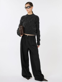 Soft wool-blend yarn jumper with cabling on the bust and single cable on the centre of the sleeve. - Wool-blend yarn jumper - Regular fit - Rounded neckline - Cable knit on the bust - Single cable on the centre of the sleeve - Rib-knit collar and hems - Regular fit Composition and Care 80% wool, 20% polyamide. Hand wash cold (40°c max); do not bleach; do not tumble dry; flat drying in the shade; cool iron; professionally dry clean perchloroethylene - mild process; do not wet clean.; iron with a cloth between.; using neutral detergent. Distributed by Max Mara S.r.l., registered office in Reggio Emilia (Italy), Via Giulia Maramotti 4, 42124