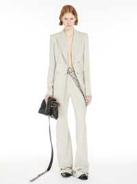 DETAILS High-waisted trousers made of technical scuba jersey, close fitting at the waistwith trouser creases that elongate the silhouette. The style is completed by back welt pockets and a central zip at the back making it comfortable to wear. Slightly flared line at the hem. COMPOSITION AND CARE 84% polyamide, 16% elastane. Hand wash cold; do not bleach; do not tumble dry; flat drying in the shade; cool iron; professionally dry clean perchloroethylene - mild process; do not wet clean.; iron with a cloth between.; using neutral detergent.; don’t rub.; turn the articles inside out before washing.; to be ironed on reverse. Distributed by Max Mara S.r.l., registered office in Reggio Emilia (Italy), Via Giulia Maramotti 4, 42124 (IT)