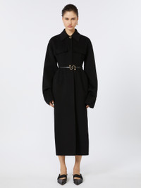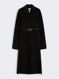 DETAILS Fitted coat in double-sided wool, with darts and shaped sides that define the silhouette. In addition to the fastening, it has a leather belt with an S-shaped buckle that cinches at the waist. Pure wool double drap fitted coat Fitted waist with overlapping side slits Shirt collar and hidden buttoning with visible top metal button Leather belt with S-shaped buckle Shirt cuffs with two buttons Regular fit COMPOSITION AND CARE Coat fabric 100% virgin wool; - except joining thread; with belt in cattle. Coat: do not wash; do not bleach; do not tumble dry; cool iron; professionally dry clean perchloroethylene - mild process; do not wet clean. Belt: do not wash; do not bleach; do not tumble dry; do not iron; do not dry clean; do not wet clean. Distributed by Max Mara S.r.l., registered office in Reggio Emilia (Italy), Via Giulia Maramotti 4, 42124 (IT)