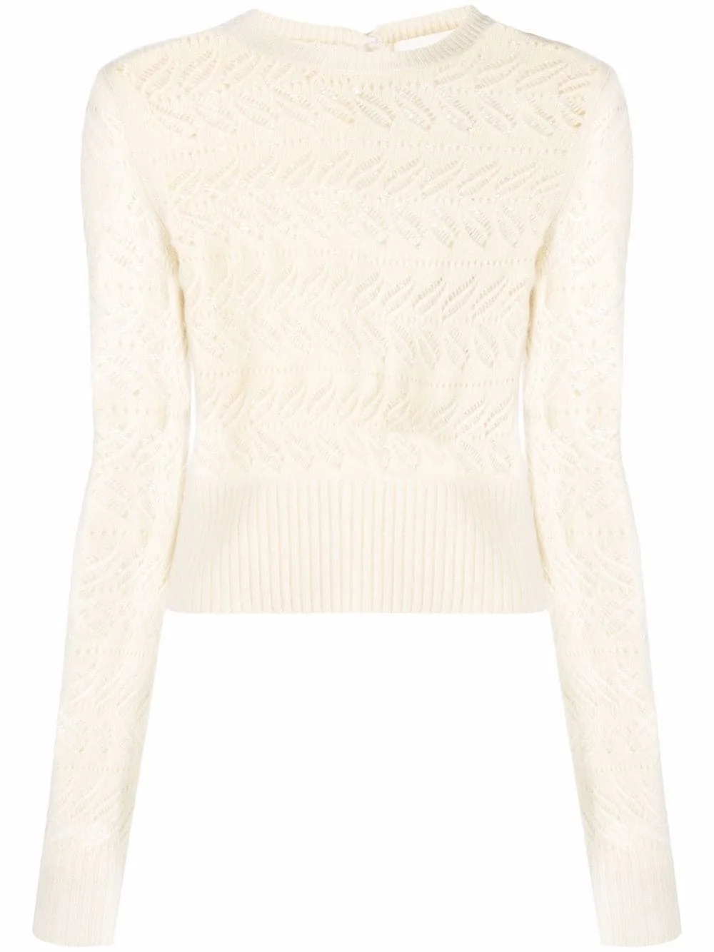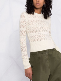 open-knit crew neck jumper Founded in 1969, Sportmax draws inspiration from American sportswear style and the London of the 60s to create contemporary designs with intricate attention to detail. Spun from a cashmere and wool blend, this jumper is knitted with a perforated open-work pattern, and finished with ribbed details on the cuffs and hem. Imported Composition Wool 80%, Cashmere 20% SIZE & FIT Model measurements Height 5 ft 9 in(1.75 m) Bust/Chest 28.74 in(73 cm) Hips 33.46 in(85 cm) Waist 23.22 in(59 cm) Measurement BUST 34.64 in(88 cm) FittingInformation This piece fits true to size. We recommend you get your regular size Cut for a slim fit Made with a mid-weight fabric