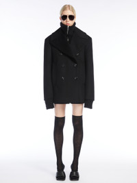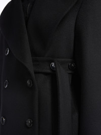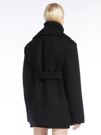 DETAILS Oversized pea coat in herringbone-patterned double-faced wool-blend broadcloth. The wide lapel collar and double-breasted design go hand in hand with the horn-look buttons and large vertical welt pockets. The fabric belt fastens on the left side, cinches the back and is threaded into the slot on the opposite side for an asymmetrical effect. The belt can also be worn in the traditional way. COMPOSITION AND CARE Fabric 100% virgin wool; lining 50% acetate, 50% viscose. Do not wash; do not bleach; do not tumble dry; cool iron; professionally dry clean perchloroethylene - mild process; do not wet clean. Distributed by Max Mara S.r.l., registered office in Reggio Emilia (Italy), Via Giulia Maramotti 4, 42124 (IT)