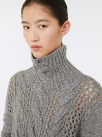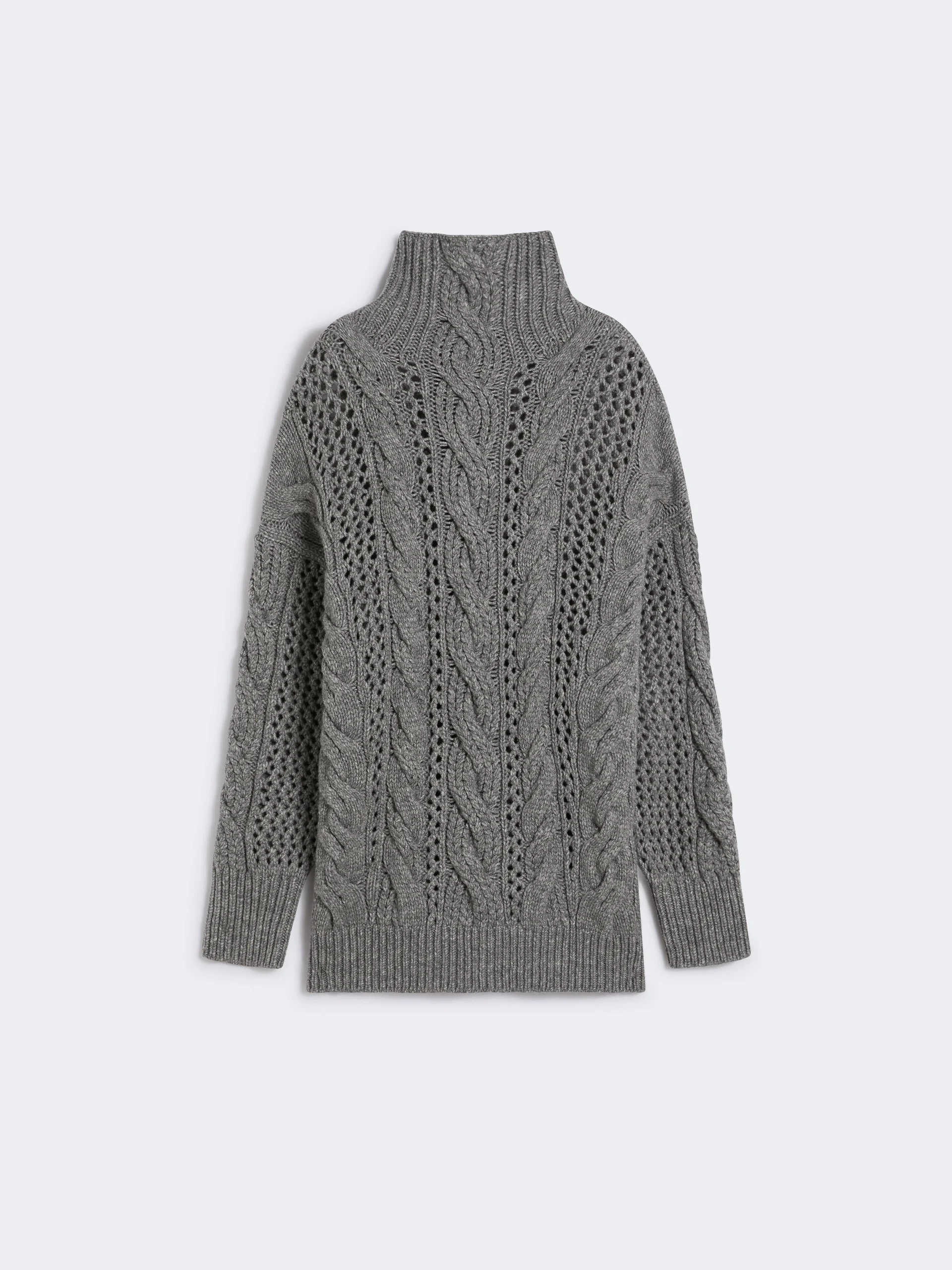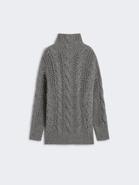 DETAILS Oversized jumper featuring intricate detailing, with cable knits and openwork on the body and sleeves. Made in a soft, warm wool blend yarn. Wool-blend jumper Oversize fit High neck Cable knit and openwork stitch motif on the body and sleeves Ribbed finish on the neck, cuffs and hem Wide fit COMPOSITION AND CARE 70% wool, 30% polyamide. Do not wash; do not bleach; do not tumble dry; cool iron; professionally dry clean perchloroethylene - mild process; do not wet clean.; iron with a cloth between. Distributed by Max Mara S.r.l., registered office in Reggio Emilia (Italy), Via Giulia Maramotti 4, 42124 (IT)