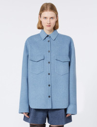 A refined evolution of the oversized shirt, crafted from double-faced pure wool and featuring stitching on the yokes and patch pockets with shaped flaps. - Double-faced shirt in pure virgin wool with a diagonal design - Oversize fit - Shirt collar with visible buttoning - Patch pockets with flap - Stitched yoke on shoulders and back - Wide fit Composition and Care Fabric 100% virgin wool; - except joining thread. Do not wash; do not bleach; do not tumble dry; cool iron; professionally dry clean perchloroethylene - mild process; do not wet clean.; wash the garment while it is fastened.; turn the articles inside out before washing. Distributed by Max Mara S.r.l., registered office in Reggio Emilia (Italy), Via Giulia Maramotti 4, 42124