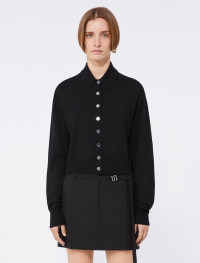 Cardigan with a feminine line, with drops on the shoulder and shirt collar. Closure with custom metal buttons and ribbed knit edges. - Pure wool cardigan - Soft fit with feminine line - Closure with personalised buttons. - Rib-knit edges and cuffs - Regular fit Composition and Care 100% virgin wool. Hand wash cold (40°c max); do not bleach; do not tumble dry; flat drying in the shade; cool iron; professionally dry clean perchloroethylene - mild process; do not wet clean.; iron with a cloth between.; using neutral detergent.; protect buttons before washing. Distributed by Max Mara S.r.l., registered office in Reggio Emilia (Italy), Via Giulia Maramotti 4, 42124