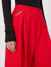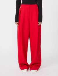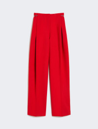 Stretch wool trousers with an original construction, featuring a pleated pattern on the front that increases the volume on the leg. Removable chain belt on the back. - Trousers in stretch wool double canvas - Regular cut with oversized leg - Pleated pattern on the leg that creates volume - Low waist and removable metal chain - In-seam side pockets and rear welt pockets - Regular fit Composition and Care Fabric 56% polyester, 40% virgin wool, 4% elastane; - except joining thread. Do not wash; do not bleach; do not tumble dry; cool iron; professionally dry clean perchloroethylene - mild process; do not wet clean.; remove the chain before washing. Distributed by Max Mara S.r.l., registered office in Reggio Emilia (Italy), Via Giulia Maramotti 4, 42124