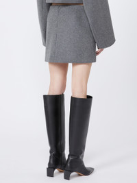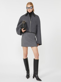 DETAILS Versatile and feminine, this miniskirt comes in pure double-sided wool, featuring a clean silhouette and a low waist. The small S detail on the side adds a customised touch. Mini skirt in double-sided pure wool Straight fit with low waist Back darts Opened by a concealed zip on the back S-rivet on the left-side hem Lined Regular fit COMPOSITION AND CARE Fabric 100% virgin wool; - except joining thread; lining 70% acetate, 30% polyester. Do not wash; do not bleach; do not tumble dry; cool iron; professionally dry clean perchloroethylene - mild process; do not wet clean. Distributed by Max Mara S.r.l., registered office in Reggio Emilia (Italy), Via Giulia Maramotti 4, 42124 (IT)
