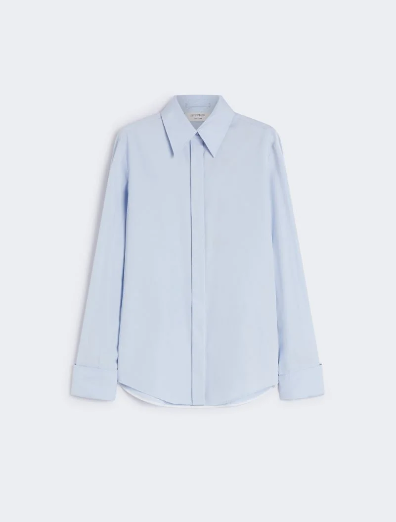 Trousers in double cotton and viscose cady, with a straight line and slightly low waist. High belt loops at the waist support the double-wrap belt with S-buckle. A knitted insert on the inside of the leg adds an original detail. - Straight trousers in double cotton and viscose cady, with ribbed knit inserts - Straight fit with slightly low waist and wide leg - Customised waistband interior. - High belt loops with double-wrap fabric belt with S-buckle - Knee-length cut and ribbed knit inserts on the inside of the leg - Regular fit Composition and Care 100% cotton. Machine wash cold delicate cycle; do not bleach; do not tumble dry; line drying in the shade; cool iron; professionally dry clean perchloroethylene - mild process. Distributed by Max Mara S.r.l., registered office in Reggio Emilia (Italy), Via Giulia Maramotti 4, 42124