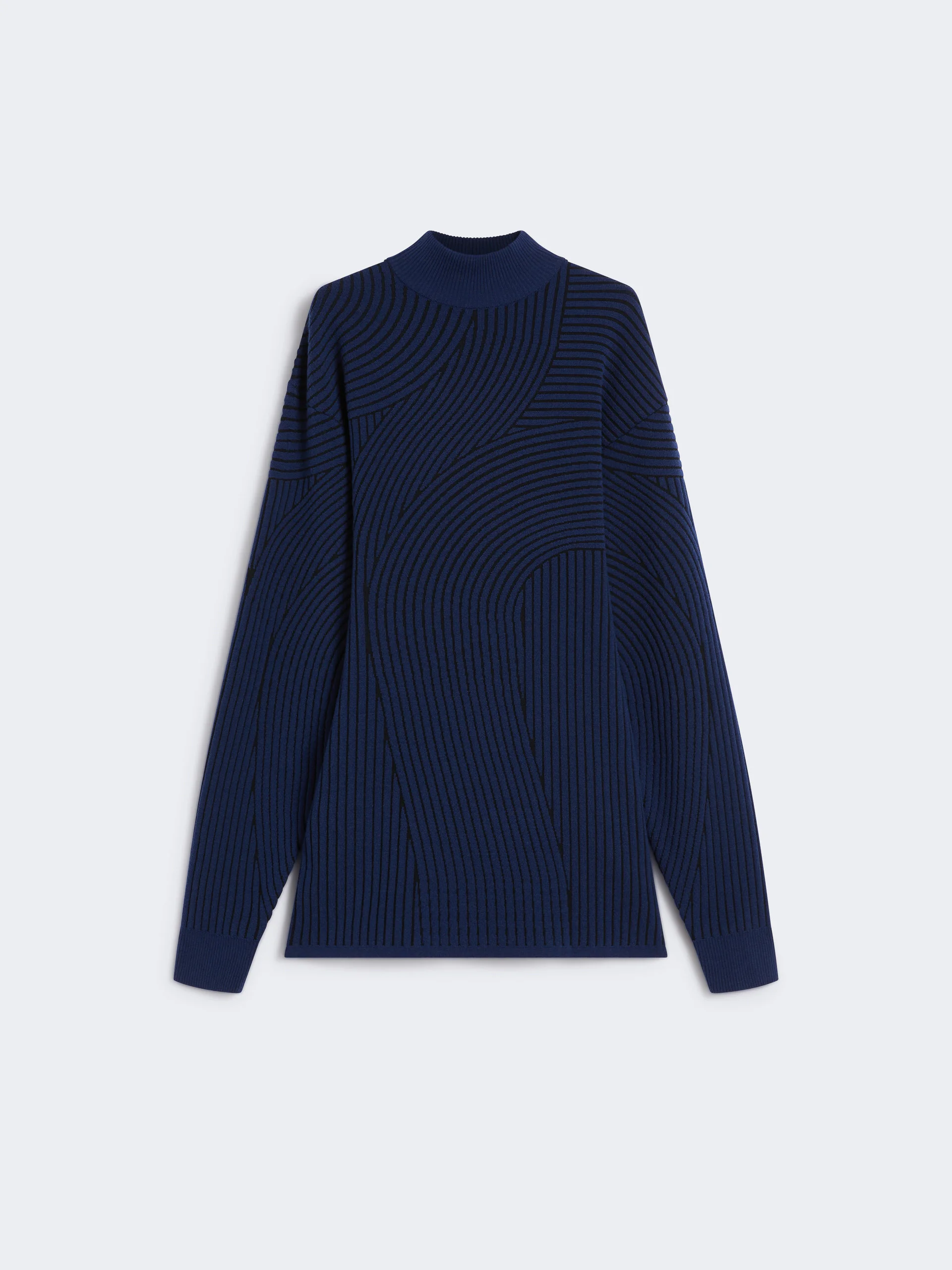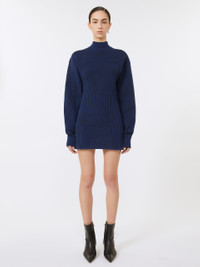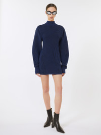 DETAILS Knit dress with a minimalist design, featuring a 3D jacquard weave. Mock polo neck and ribbed details. Stretch wool blend knit dress Fitted Polo neck Wide sleeve 3D jacquard knit Ribbed knit cuffs and collar Regular fit COMPOSITION AND CARE 62% wool, 27% polyamide, 8% polyester, 3% elastane. Hand wash cold (40°c max); do not bleach; do not tumble dry; flat drying in the shade; cool iron; professionally dry clean perchloroethylene - mild process; do not wet clean.; iron with a cloth between.; using neutral detergent. Distributed by Max Mara S.r.l., registered office in Reggio Emilia (Italy), Via Giulia Maramotti 4, 42124 (IT)