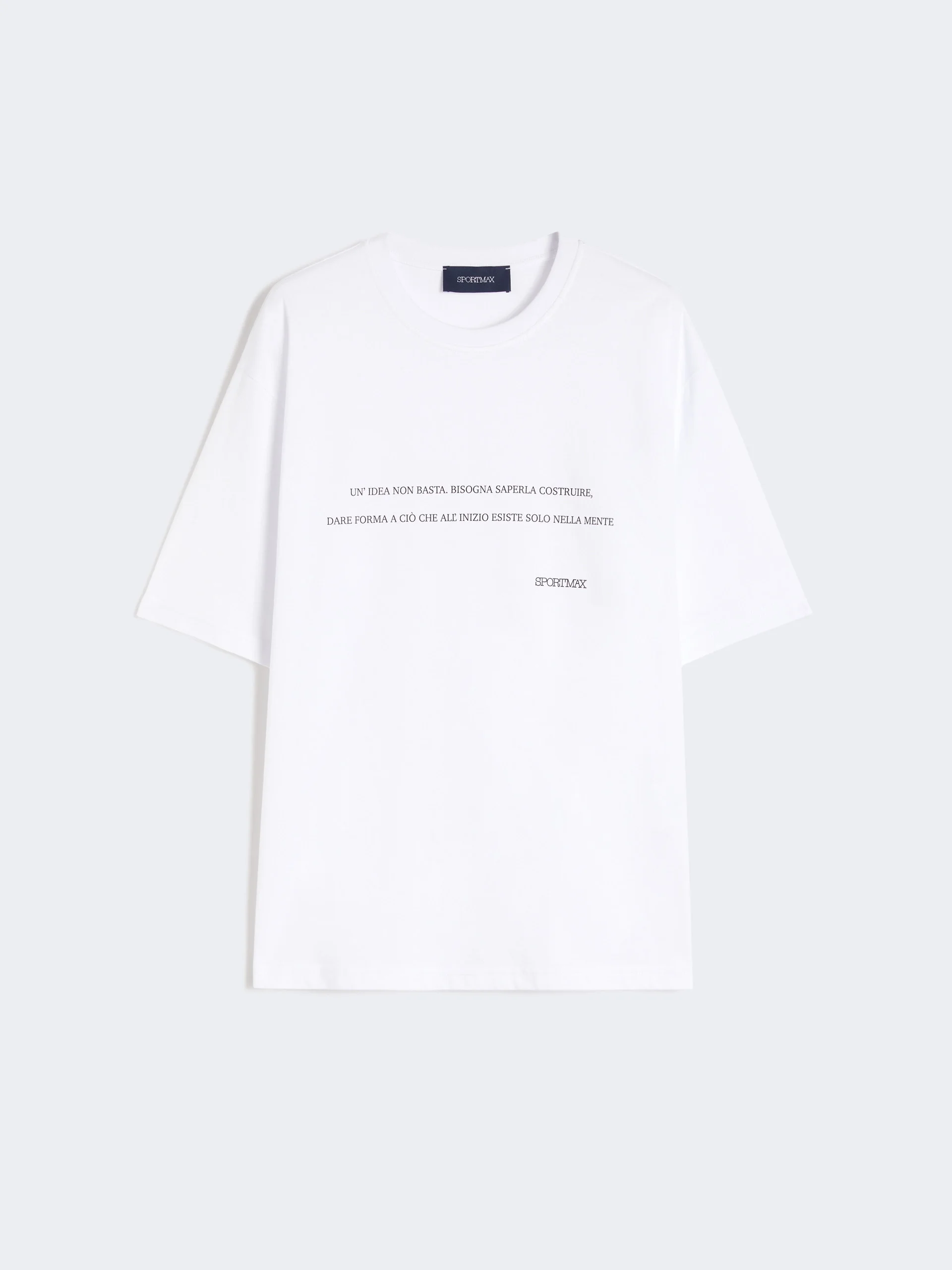 DETAILS Slightly oversized T-shirt in pure cotton jersey with short sleeves and a crew neck. Customised with lettering print on the chest. - Pure cotton T-shirt - Rounded neckline - Short sleeve with stitching - Customised print on the chest - Regular fit COMPOSITION AND CARE 100% cotton. Hand wash cold (40°c max); do not bleach; do not tumble dry; flat drying in the shade; cool iron; do not dry clean; do not wet clean.; iron with a cloth between.; using neutral detergent.; don’t rub.; turn the articles inside out before washing.; to be ironed on reverse. Distributed by Max Mara S.r.l., registered office in Reggio Emilia (Italy), Via Giulia Maramotti 4, 42124 (IT) Collection: Sportmax Product code: 2971016506001 - SPDQUIETE