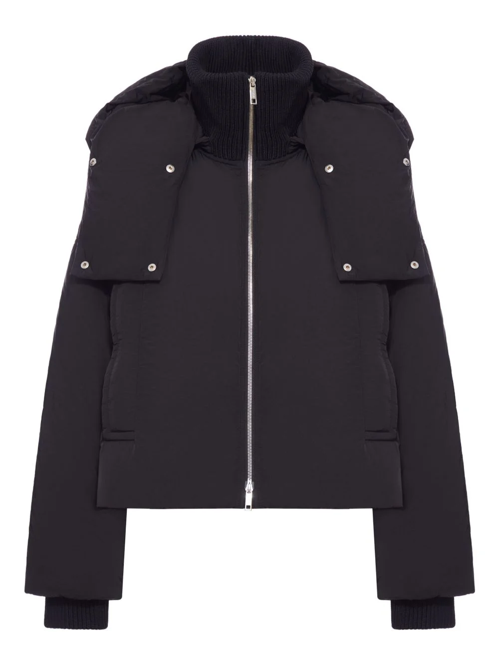 puffer hooded zip-ip jacket Highlights - Black - Hooded - Zip fastening - Ribbed details - Snap buttons - High neck Made in Italy Composition Polyamide 100% Washing instructions Read Manufacturer Guidelines
