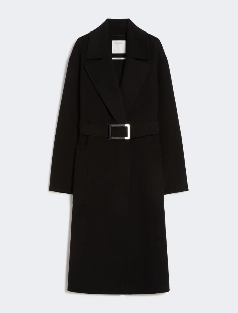 Long wrap coat, crafted in soft double-face pure wool. The wide lapel and the belt at the waist with metal buckle highlight the feminine look, which is completed by maxi patch pockets for touch of functionality. - Pure wool double-sided fabric coat - Collar with wide lapels - Closure with fabric belt and metal buckle - Side patch pockets - Wide fit Composition and Care Fabric 100% virgin wool; - except joining thread. Do not wash; do not bleach; do not tumble dry; cool iron; professionally dry clean perchloroethylene - mild process; do not wet clean.; wash the belt in a net sack.; protect the buckle before washing. Distributed by Max Mara S.r.l., registered office in Reggio Emilia (Italy), Via Giulia Maramotti 4, 42124