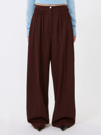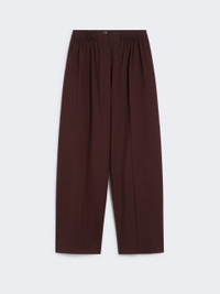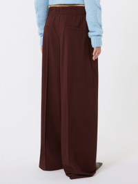 DETAILS The double-gathered belt adds volume and a dynamic touch to these stretch gabardine trousers. Wide volume on the leg, with trouser crease front and back. Stretch, technical gabardine wool trousers Wide fit with slightly low waist Customised concealed zip and snap-button fastening Double belt motif Gathering at the waist In-seam side pockets and rear welt pockets Regular fit COMPOSITION AND CARE 95% virgin wool, 5% elastane. Do not wash; do not bleach; do not tumble dry; cool iron; professionally dry clean perchloroethylene - mild process; do not wet clean.; wash the garment while it is fastened. Distributed by Max Mara S.r.l., registered office in Reggio Emilia (Italy), Via Giulia Maramotti 4, 42124 (IT)