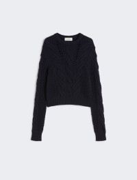 Soft, warm wool blend yarn jumper with openwork cable knit on the body and sleeves. Ribbed details on the hem and cuffs - Wool-blend jumper - Regular fit - Rounded neckline - Cable knit and openwork stitch motif on the body and sleeves - Ribbed hem and cuffs - Regular fit Composition and Care 70% wool, 30% polyamide. Do not wash; do not bleach; do not tumble dry; cool iron; professionally dry clean perchloroethylene - mild process; do not wet clean.; iron with a cloth between. Distributed by Max Mara S.r.l., registered office in Reggio Emilia (Italy), Via Giulia Maramotti 4, 42124