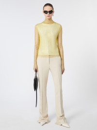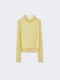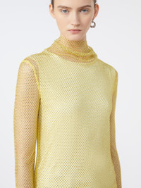 DETAILS Long-sleeved T-shirt made of mesh with applied rhinestones. The raised cowl neck creates a delicate drape, which is also repeated at the hem of the garment. Lined model with jersey tank top. Technical mesh T-shirt with applied rhinestones Straight and soft fit Slightly draped cowl neck Asymmetrical draping motif at the hem of the garment Lined with a matching viscose jersey tank top Fit COMPOSITION AND CARE Knitted blouse jersey fabric 97% polyester, 3% elastane; - exclusive of decoration. Jersey top 100% viscose. Knitted blouse: hand wash cold (40°c max); do not bleach; do not tumble dry; flat drying in the shade; do not iron; do not dry clean; do not wet clean.; Using neutral detergent.; Don’t rub. Jersey top: do not wash; do not bleach; do not tumble dry; cool iron; professionally dry clean perchloroethylene - mild process; do not wet clean.; Iron with a cloth between. Distributed by Max Mara S.r.l., registered office in Reggio Emilia (Italy), Via Giulia Maramotti 4, 42124 (IT)