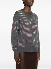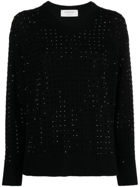 crystal-embellished V-neck jumper