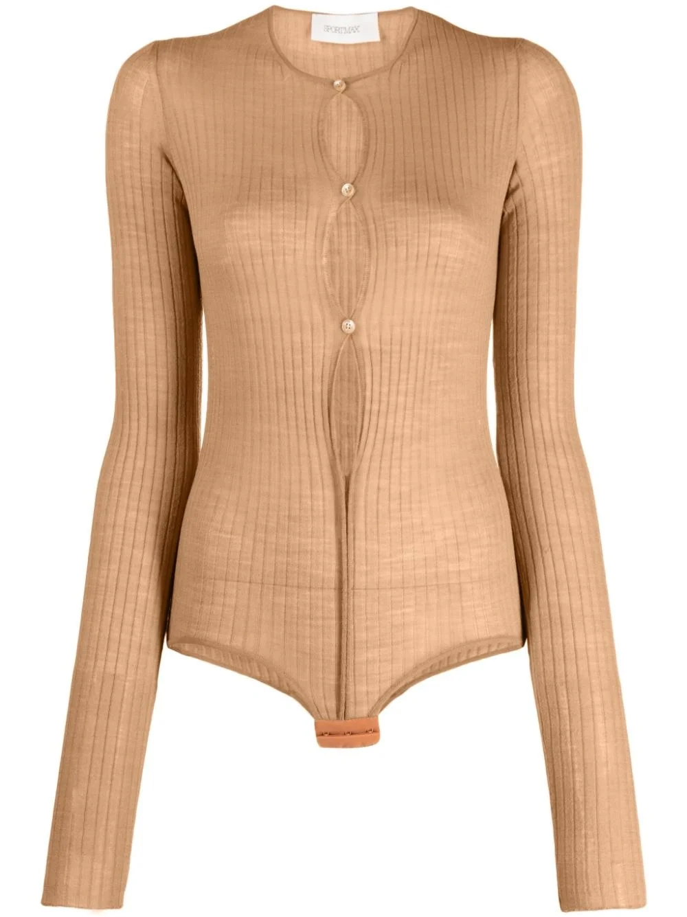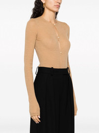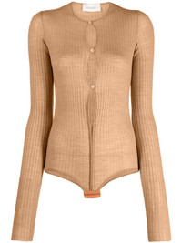 ribbed-knit button-up bodysuit Highlights - Sand beige - Wool blend - Ribbed knit - Cut-out detailing - Round neck - Front button fastening - Hook and eye fastening - Long sleeves - Just a reminder that this piece must be tried on over your own garments. Imported Composition Wool 62%, Acrylic 26%, Polyamide 12% SIZE & FIT Model measurements Height 5 ft 10 in(1.79 m) Bust/Chest 33.07 in(84 cm) Hips 35.82 in(91 cm) Waist 24.01 in(61 cm) FittingInformation Designed for a close fit throughout Made with a lightweight knit, this piece offers some stretch This piece fits true to size – take your usual size