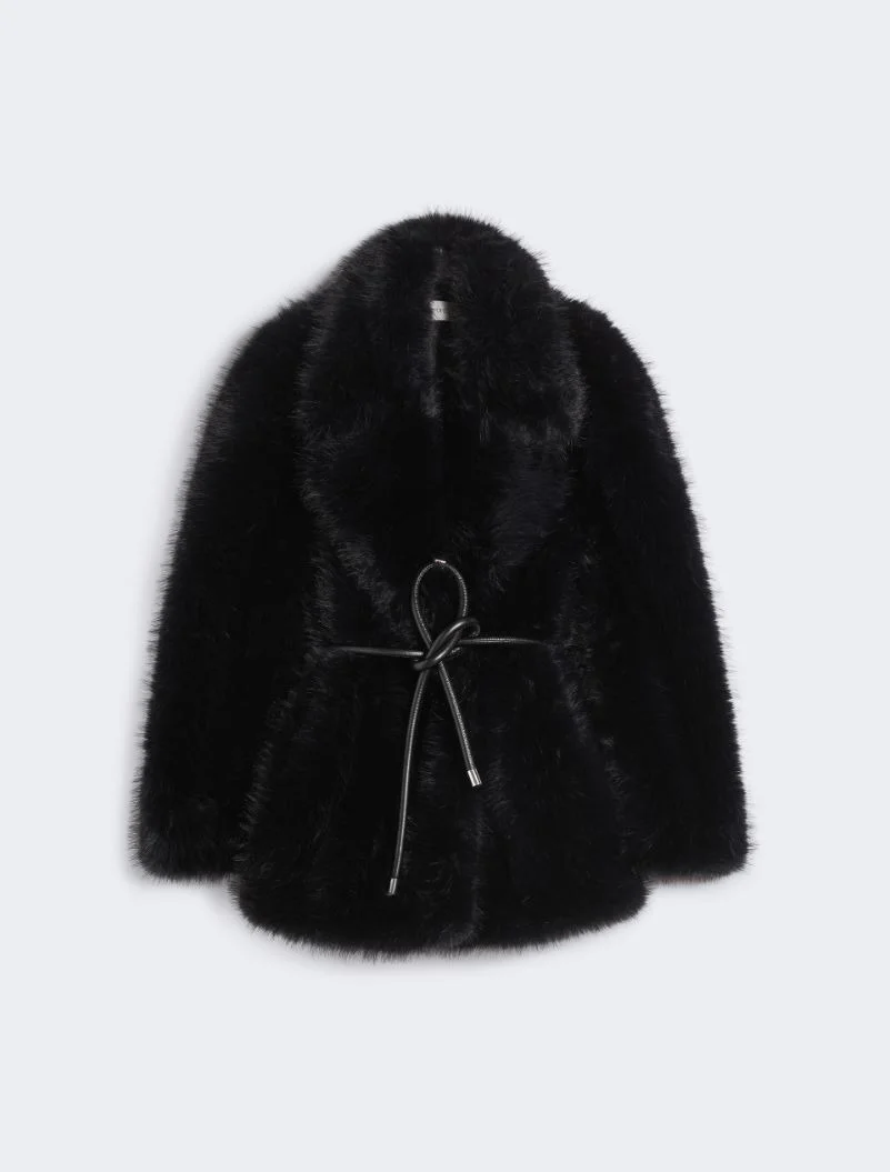 Soft jacket in furry-effect fabric, with wide lapels and matching belt to cinch the waist. - Furry effect fabric jacket - Regular fit - Wide lapel neckline - Tubular belt in coated fabric, with metal ends - Matching tone satin lining - Wide fit Composition and Care Coat in jersey jersey fabric 100% polyester; lining 95% polyester, 5% elastane; - exclusive of accessories. Belt jersey fabric 100% polyester; layer polyurethanic resin. Coat in jersey: do not wash; do not bleach; do not tumble dry; do not iron; professionally dry clean perchloroethylene - mild process; do not wet clean.; Before cleaning the style remove the accessories.; Remove the belt before washing. Belt: do not wash; do not bleach; do not tumble dry; do not iron; do not dry clean; do not wet clean. Distributed by Max Mara S.r.l., registered office in Reggio Emilia (Italy), Via Giulia Maramotti 4, 42124