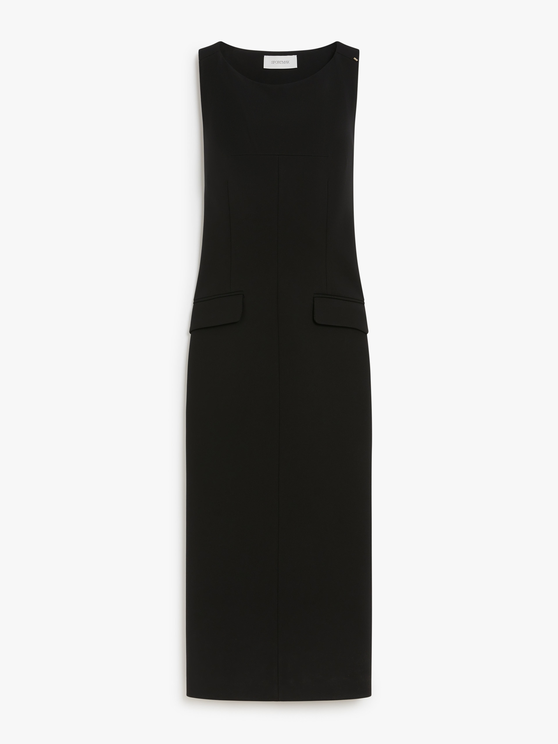 DETAILS Dress in technical crepe jersey, figure hugging with deep darts at the bodice to accentuate the silhouette. The sleeveless style and straight neckline at the front are completed by a wide neckline at the back. Faux flap pockets on the sides. Klepsydra Capsule Collection. A selection of pieces with an hourglass silhouette that embody the contemporary Sportmax design. Regular fit. COMPOSITION AND CARE Outer fabric 78% viscose, 16% polyamide, 6% elastane; inner fabric 100% polyester; lining 62% acetate, 38% polyester. Do not wash; do not bleach; do not tumble dry; cool iron; professionally dry clean perchloroethylene - mild process; do not wet clean.; iron with a cloth between. Distributed by Max Mara S.r.l., registered office in Reggio Emilia (Italy), Via Giulia Maramotti 4, 42124 (IT)
