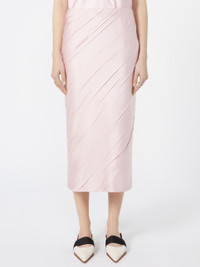 DETAILS Clean-cut pencil skirt made of bonded satin, decorated with irregular pleating. The resulting effect is a diagonal, dynamic and delicately three-dimensional pattern. Pencil skirt in bonded and pleated technical satin with bias cut Straight fit with low waist Back opening with concealed zip Darts at the waist and a central back slit Lined Regular fit COMPOSITION AND CARE Fabric 100% polyester; lining 100% polyester. Hand wash cold (40°c max); do not bleach; do not tumble dry; line drying in the shade; do not iron; professionally dry clean perchloroethylene - mild process; do not wet clean. Distributed by Max Mara S.r.l., registered office in Reggio Emilia (Italy), Via Giulia Maramotti 4, 42124 (IT)