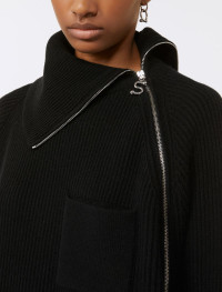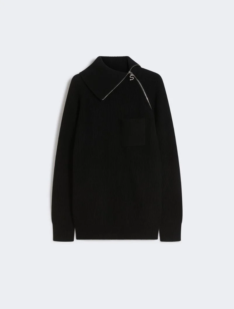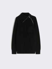 Loose and enveloping, the cashmere blend jumper features a soft volume and a special construction with a raised collar and diagonal zip. - Wool and cashmere yarn jumper - Loose fit - High neck with contrasting interior - Diagonal zip opening on neck and left shoulder - Patch pocket on the chest - Raglan sleeves - Wide fit Composition and Care 80% wool, 20% cashmere. Hand wash cold (40°c max); do not bleach; do not tumble dry; flat drying in the shade; cool iron; professionally dry clean perchloroethylene - mild process; do not wet clean.; iron with a cloth between.; using neutral detergent.; protect accessories before washing. Distributed by Max Mara S.r.l., registered office in Reggio Emilia (Italy), Via Giulia Maramotti 4, 42124