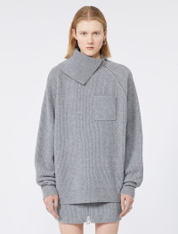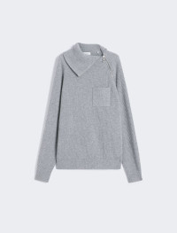 Loose and enveloping, the cashmere blend jumper features a soft volume and a special construction with a raised collar and diagonal zip. - Wool and cashmere yarn jumper - Loose fit - High neck with contrasting interior - Diagonal zip opening on neck and left shoulder - Patch pocket on the chest - Raglan sleeves - Wide fit Composition and Care 80% wool, 20% cashmere. Hand wash cold (40°c max); do not bleach; do not tumble dry; flat drying in the shade; cool iron; professionally dry clean perchloroethylene - mild process; do not wet clean.; iron with a cloth between.; using neutral detergent.; protect accessories before washing. Distributed by Max Mara S.r.l., registered office in Reggio Emilia (Italy), Via Giulia Maramotti 4, 42124