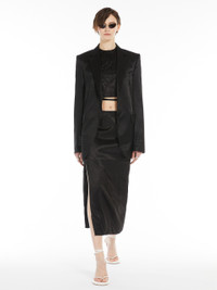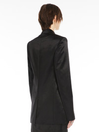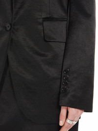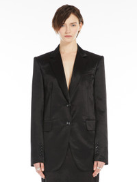 DETAILS Blazer with oversized volume and masculine construction, made of garment-washed acetate satin with crinkled effect. The decisive shoulders are lightly padded and combined with a masculine lapel with buttonhole and sartorial-inspired melton detail. Low fastening with two customised buttons, and sleeves with a forward-turned construction for a modern look. The style is completed by a diagonal pocket on the chest, two side welt pockets with flap and a central overlapping rear slit. Lined. COMPOSITION AND CARE Fabric 100% acetate; lining 70% acetate, 30% polyester; sleeves lining 97% viscose, 3% acetate. Do not wash; do not bleach; do not tumble dry; cool iron; professionally dry clean perchloroethylene - mild process; do not wet clean.; wash the garment while it is fastened.; don’t iron the labels.; turn the articles inside out before washing. Distributed by Max Mara S.r.l., registered office in Reggio Emilia (Italy), Via Giulia Maramotti 4, 42124 (IT)