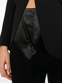 satin-weave low-rise trousers Highlights - Black - Satin weave - Pressed crease - Dart detailing - Low-rise - Straight leg - Split ankles - Unlined - Concealed rear hook and zip fastening Made in Italy Composition Acetate 100% SIZE & FIT Model measurements Height 5 ft 9 in(1.76 m) Bust/Chest 31.88 in(81 cm) Hips 35.43 in(90 cm) Waist 24.8 in(63 cm) FittingInformation Designed for a tapered fit, these trousers allow for a close fit at the waist and a loose unrestricted fit over the leg with a closer fit towards the ankle Made from a midweight non-stretch fabric This piece fits true to size – take your usual size