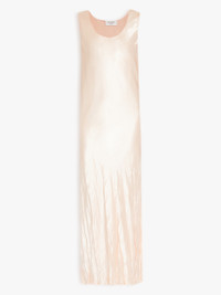 DETAILS Long dress made of washed acetate satin, with a crinkled effect pronounced at the hem. Sleeveless and with a crew neck, the garment has a flowing fit with a feminine silhouette. Lined. COMPOSITION AND CARE Fabric 100% acetate; lining 95% acetate, 5% elastane. Do not wash; do not bleach; do not tumble dry; cool iron; professionally dry clean perchloroethylene - mild process; do not wet clean.; don’t iron the labels.; when ironing, take care not to flatten the wavy look of the fabric. Distributed by Max Mara S.r.l., registered office in Reggio Emilia (Italy), Via Giulia Maramotti 4, 42124 (IT)