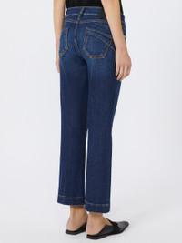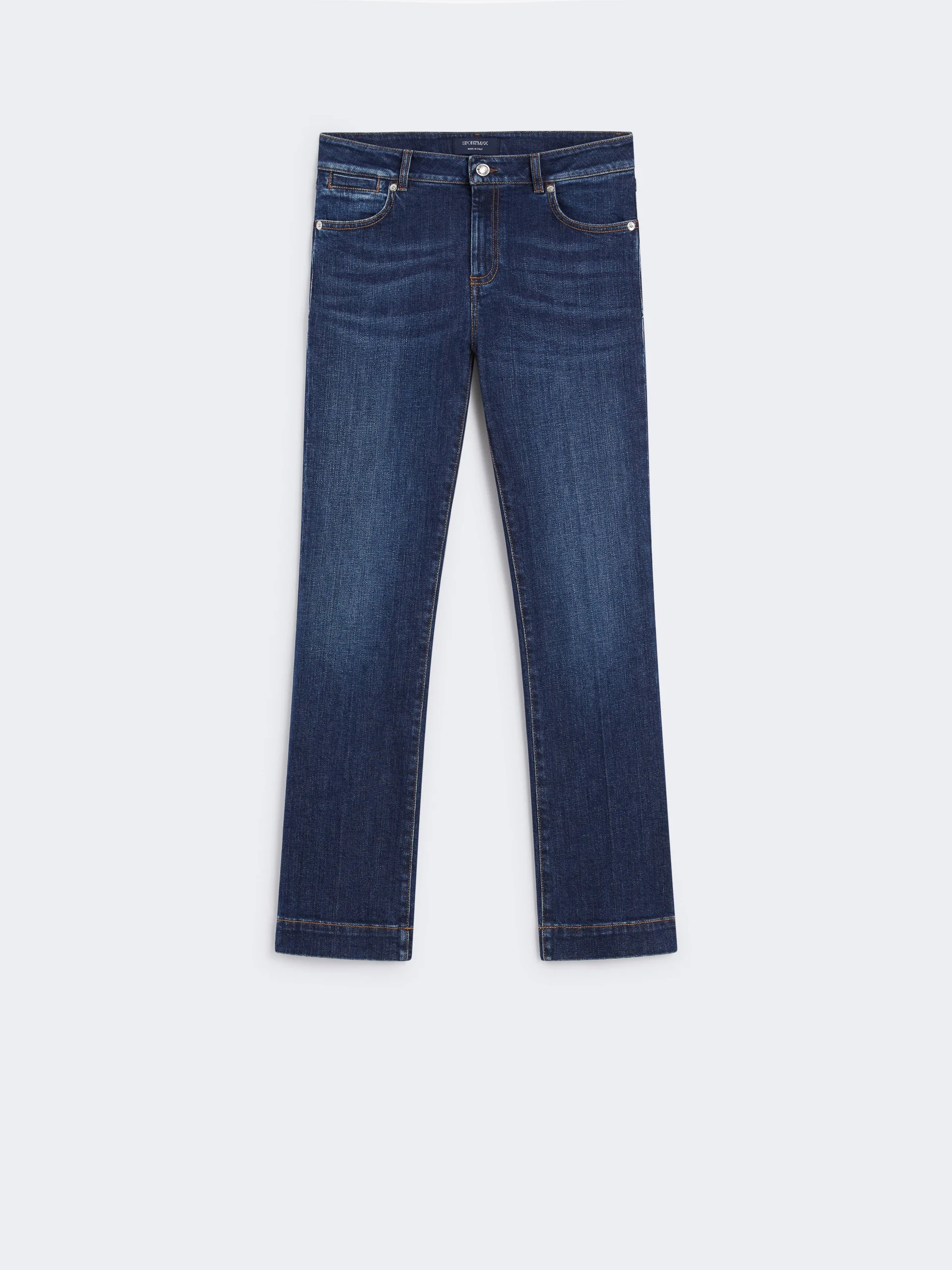 DETAILS Jeans with a Perfect Fit construction with low waist and cropped cut at the ankle. The medium wash is paired with contrast stitching, custom metal rivets and a trouser crease for a defined silhouette. Perfect-fit jeans in authentic indigo stretch denim, with dark used treatment and medium vintage look. Fitted at the upper part, with low waist and cropped cut at the ankle 5 pocket construction with custom tack button Contrasting stitching with tobacco-coloured thread. Trouser crease on front and back and personalized back label Regular fit COMPOSITION AND CARE 99% cotton, 1% elastane. Machine wash cold delicate cycle; do not bleach; do not tumble dry; line drying in the shade; cool iron; do not dry clean.; wash the garment while it is fastened.; do not iron the buttons.; take care when wearing light-coloured clothes or accessories because, with the heat of the body, the indigo fabric , may fade and stain. be careful while sitting on light coloured surfaces, especially if wet. wash garments separately and always turned inside out. hang the garment turned inside out by avoiding to expose it to direct sunlight. avoid removing isolated stains.; contains non-textile parts of animal origin. Distributed by Max Mara S.r.l., registered office in Reggio Emilia (Italy), Via Giulia Maramotti 4, 42124 (IT)