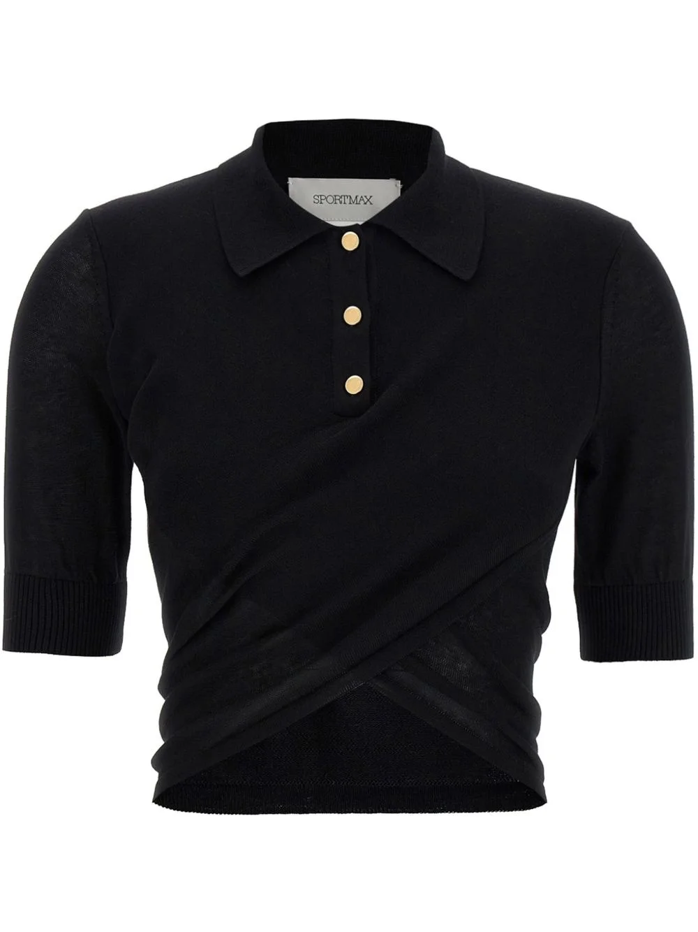 Shaker polo shirt Highlights - Black - Short sleeves - Classic collar - Button closure - Wrap-around design - Ribbed trims Made in Italy Composition Cotton 100%