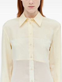sheer panelled shirt Highlights - Yellow - Long sleeves - Button fastening - Collared neckline - Sheer panel Imported Composition Viscose 100%, Polyester 100% Washing instructions Read Manufacturer Guidelines