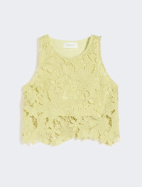 Short macrame top featuring a floral pattern, rounded neckline and concealed zip fastening at the back. The slim-fit model comes with a cotton halterneck camisole. Scalloped hem that follows the pattern. - Floral-patterned macrame top - Rounded neckline with a back zip - Comes with a fine rib-knit stretch cotton halterneck camisole - Regular fit Composition and Care Jersey top 100% polyester. Singlet 95% cotton, 5% elastane. Jersey top: hand wash cold (40°c max); do not bleach; do not tumble dry; flat drying in the shade; cool iron; professionally dry clean perchloroethylene - mild process; do not wet clean.; Iron with a cloth between.; Using neutral detergent.; Don’t rub.; Turn the articles inside out before washing.; To be ironed on reverse. Singlet: hand wash cold (40°c max); do not bleach; do not tumble dry; flat drying in the shade; cool iron; professionally dry clean perchloroethylene - mild process; do not wet clean.; Iron with a cloth between.; Using neutral detergent.; Don’t rub.; Turn the articles inside out before washing.; To be ironed on reverse. Distributed by Max Mara S.r.l., registered office in Reggio Emilia (Italy), Via Giulia Maramotti 4, 42124