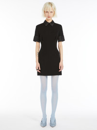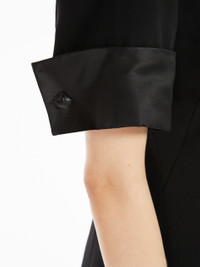 DETAILS Short-sleeved mini dress in dense-hand matte viscose satin fabric. Both the shirt collar and cufflink-embellished cuffs are made from billowing heavy satin fabric for a contrasting effect. The feminine fit boasts front dart detail that transforms into small pleats. Lined garment. COMPOSITION AND CARE Fabric 100% viscose; fabric 2 100% polyester; lining 70% acetate, 30% polyester. Do not wash; do not bleach; do not tumble dry; cool iron; professionally dry clean perchloroethylene - mild process; do not wet clean.; remove the cufflinks before washing. Distributed by Max Mara S.r.l., registered office in Reggio Emilia (Italy), Via Giulia Maramotti 4, 42124 (IT)