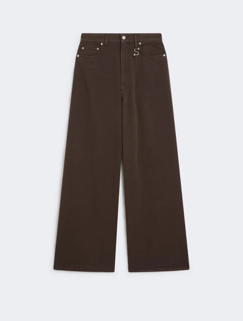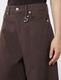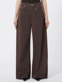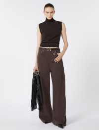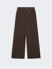 Wide and soft 5-pocket trousers in a garment-dyed cotton bull. The volume of the leg and the on-tone stitching details add an iconic note to the design. - Five-pocket, garment-dyed, stretch bull cotton trousers. - Oversize fit with low waist and low crotch - 5 pocket construction with custom tack button - On tone stitching, with pen holder on the back - S-rivet loop on the front and personalized leather label - Wide fit Composition and Care 100% cotton. Machine wash cold delicate cycle; do not bleach; do not tumble dry; line drying in the shade; cool iron; do not dry clean.; wash the garment while it is fastened.; do not iron the buttons.; turn the articles inside out before washing.; remove metal parts before washing.; this item may leave colour stains on brightly-coloured garments.; contains non-textile parts of animal origin. Distributed by Max Mara S.r.l., registered office in Reggio Emilia (Italy), Via Giulia Maramotti 4, 42124