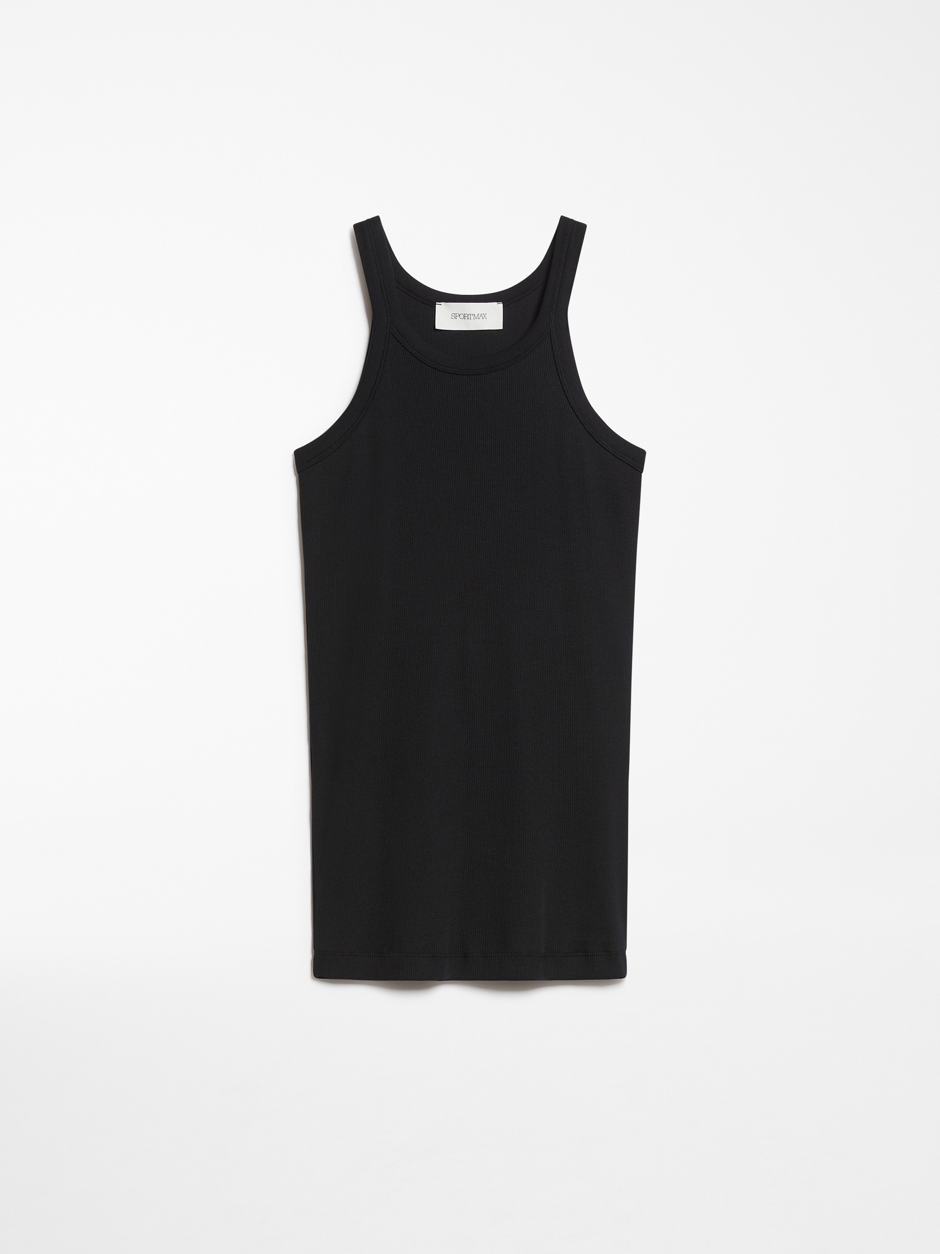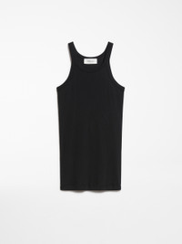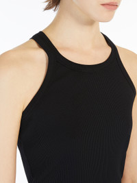 DETAILS Crew-neck tank top in ribbed stretch cotton and silk yarn. Slim, feminine fit, with halter-neck cut on the shoulders. COMPOSITION AND CARE 69% cotton, 27% silk, 4% elastane. Hand wash cold; do not bleach; do not tumble dry; flat drying in the shade; cool iron; professionally dry clean perchloroethylene - mild process; do not wet clean.; iron with a cloth between.; iron into original measurements.; using neutral detergent. Distributed by Max Mara S.r.l., registered office in Reggio Emilia (Italy), Via Giulia Maramotti 4, 42124 (IT)